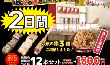 2025年10月7日(火)串鳥のテイクアウト専門店がイオン札幌手稲駅前店内にオープンいたします!お買い物の帰りに是非お立ち寄りください!オープニングイベントと致しまして10/7日(火)・8日(水)の2日間は下記の内容でオープニングイベント開催いたします!●焼鳥3種12本セ…