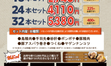 道内限定 新串鳥おみやげセット販売開始!※中央地区は串鳥セット3780円(税込)ベストパック5060円(税込)になります。※揚げ物は取り扱いのない店舗がございます。下記を参照してください。● 郊外地区と中央地区では価格が違います。● お電話でのご注文は串鳥おみやげセットとお申し付…