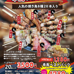 詳しくは「串鳥岩見沢店限定 焼鳥1本80円企画」(pdfファイル)をご覧ください。