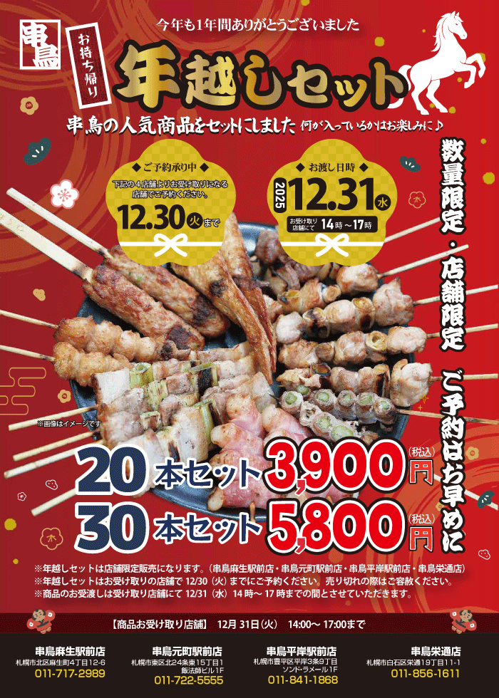 麻生・元町・平岸・栄通4店舗限定 年越しセット販売!